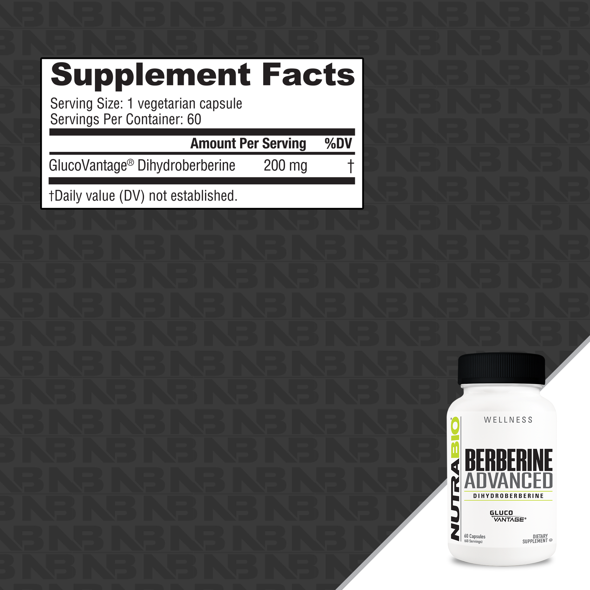 Berberine Advanced removes these limitations with usage of GlucoVantage®, the first commercially available brand of dihydroberberine. Dihydroberberine is a metabolite of berberine — one of the most popular and well-studied agents for carbohydrate and metabolism support.* However, berberine requires a rather large dose to be useful (due to poor bioavailability) and can result in GI discomfort for a significant majority of users.*