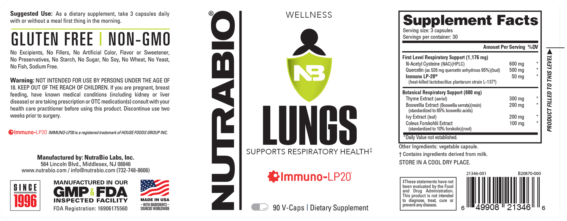 - Enhanced Respiratory Function: NutraBio Lungs supports the lungs and respiratory system, essential for those in polluted environments or with active lifestyles.*
