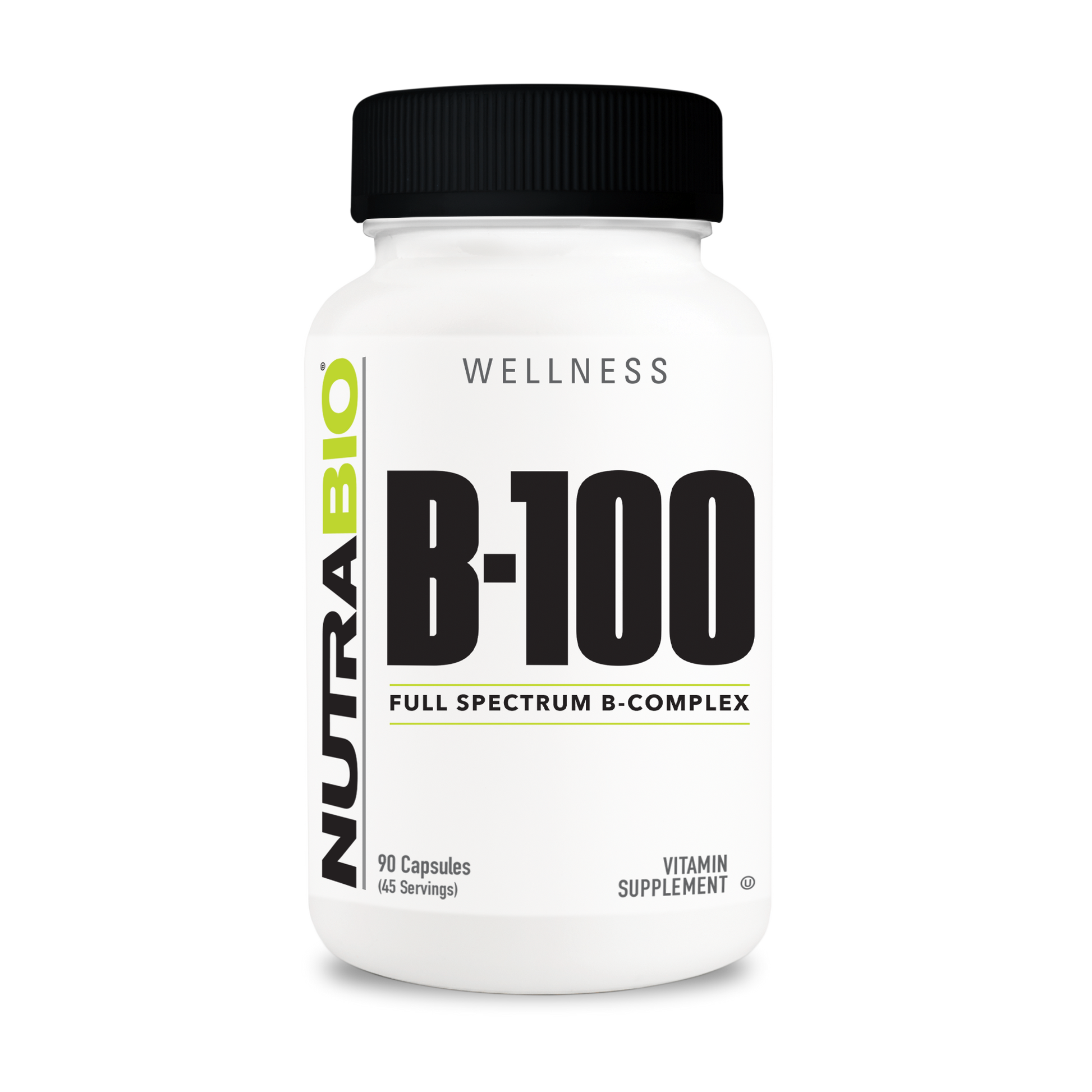 NutraBio Vitamin B-100 Complex is an all-encompassing blend of essential B vitamins, vital for maintaining a range of physiological functions. This complex includes Vitamin B1 (thiamine), B2 (riboflavin), B3 (niacinamide), B5 (pantothenic acid), B6 (pyridoxine HCl), and B12 (methylcobalamin), each contributing uniquely to support your body’s health.